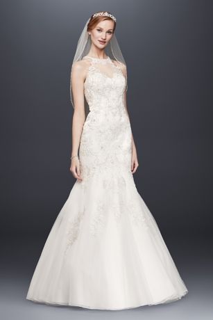 Jewel Lace Wedding Dress With Tulle Trumpet Skirt David S