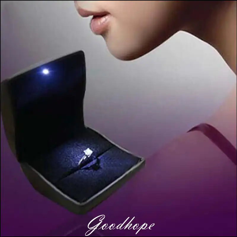Led Lighted Black Leather Engagement Ring Jewelry Gift Box Wedding Diamond Ring Bague Presentation Stand Hoolder Showed Case New