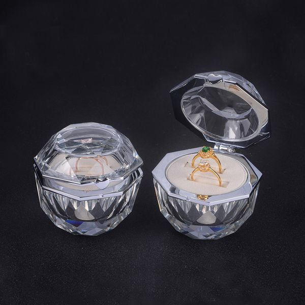 2019 Clear Crystal Proposal Ring Box Luxury Wedding Engagement Couple Ring Presentation Jewelry Gift Packaging Octagonal Made Of Glass From Sheyabox