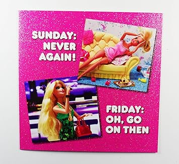 Hangover Party Drunk Memes Funny Barbie Card Birthday Pink Glitter