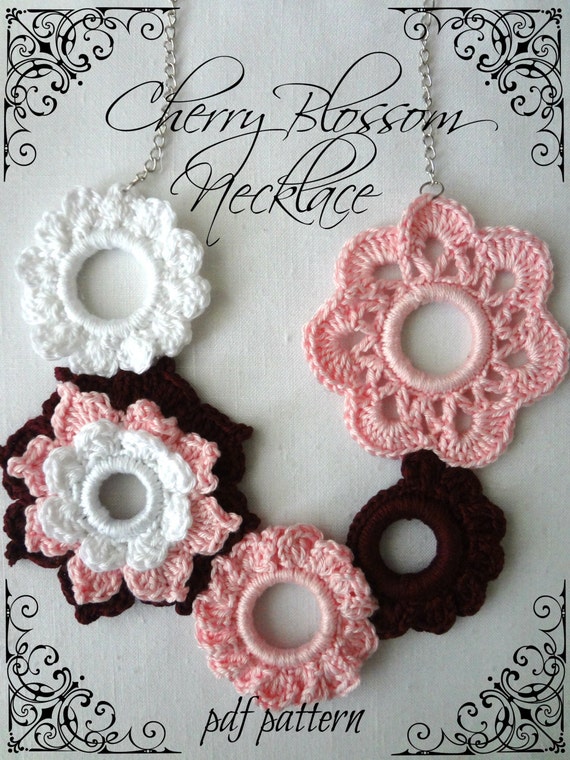 Crochet Pattern Cherry Blossom Necklace Pdf Crochet Pattern Etsy